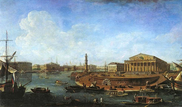 Восточная часть Васильевского острова издавна формировалась как торговый и деловой центр города. В различное время, при составлении генеральных планов, уже предполагалось превращение его в единый архитектурный ансамбль. Градостроительное мышление зодчих XVIII века понимало эту задачу как застройку набережной, ориентированной на противоположный берег Невы и Зимний дворец. В соответствии с таким планом в 1784 году здесь началось строительство каменного здания биржи по проекту Дж. Кваренги. Это строительство к началу XIX века так и не было доведено до конца.