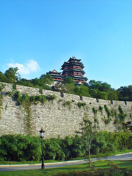 Нанкин, административный центр одной из богатейших китайских провинций, не менее десяти раз за 2 400 лет своей истории становился столицей империи. Он обладает одной из самых длинных в мире крепостных стен, которая охватывает прямоугольник со сторонами 10 и 5,5 км. Построенная правителями династии Мин (1366 -1386), она имеет в длину 33 км. Высота ее 6 -12 м, ширина у основания 14, а верхней части 7 м. Стена сложена из кирпичей весом по 15 кг, которые поставлялись пятью провинциями.