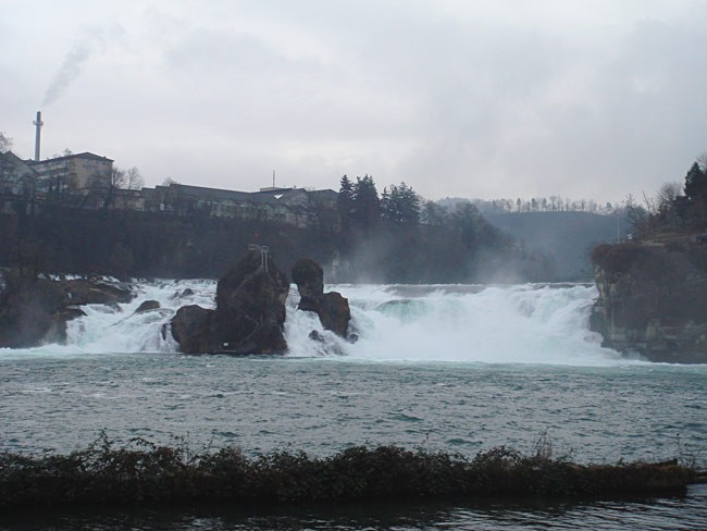 Считается самым большим и самым мощным водопадом в Европе. Отличается не столько своей высотой (23 м), сколько большим объемом падающей воды. Ширина Рейнского водопада 150 метров, высота около 23 м. Мощью низвергаемой воды мало что сравнится в Европе с этим водопадом. Объем воды изменяется в зависимости от времени года, в период же таяния снегов с камней низвергается около 600 кубометров воды в секунду, в зимний сезон падает около 250 кубометров. Если вы хотите насладиться Рейнским водопадом поближе - можно прокатиться вблизи на кораблике. У основания водопада сделан наблюдательный пункт с выступающей платформой, вид оттуда наиболее поразителен.