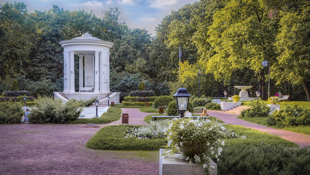 На территории парка расположен ряд красивых архитектурных сооружений: Храм Цереры, Оперный и Хлебный дом, Малый и Большой дворец. Для любителей здорового образа жизни сооружен спортивный комплекс (тренажерные залы, теннисный корт, волейбольная площадка). Изюминкой парка является светомузыкальный фонтан.