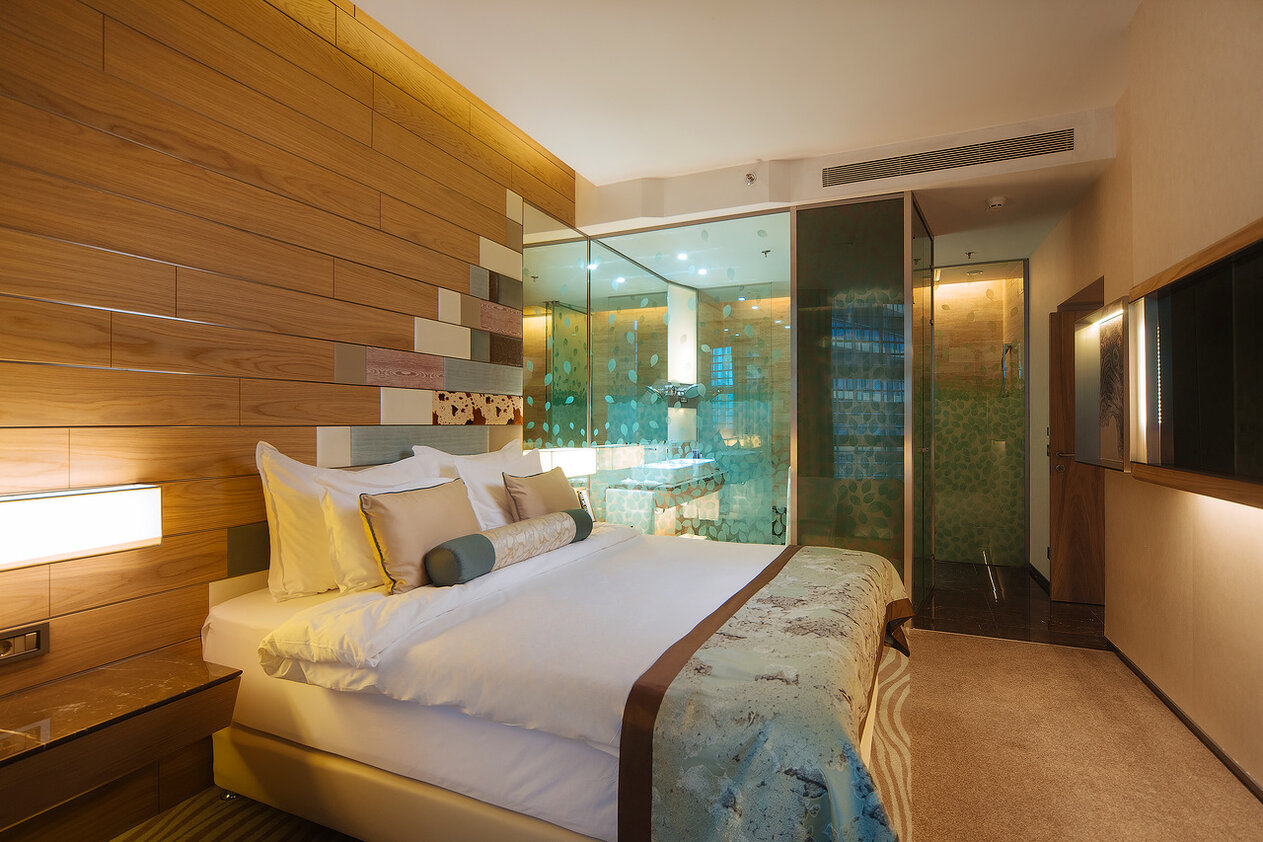 Отдыхающие могут выбрать оптимальный вариант размещения для отдыха и оздоровления: семейный (15 600 руб/сут.), делюкс (от 9 800 руб/сут.) или королевский люкс (от 50 000 руб./сут.)